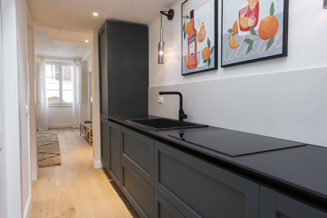The apartment, recently renovated, combines the charm of tradition with a contemporary touch. The interiors are bright and elegant, with parquet floors and boiserie on the walls, creating a welcoming and sophisticated environment. The living room is the heart of the house, ideal for relaxing after a day discovering Florence.