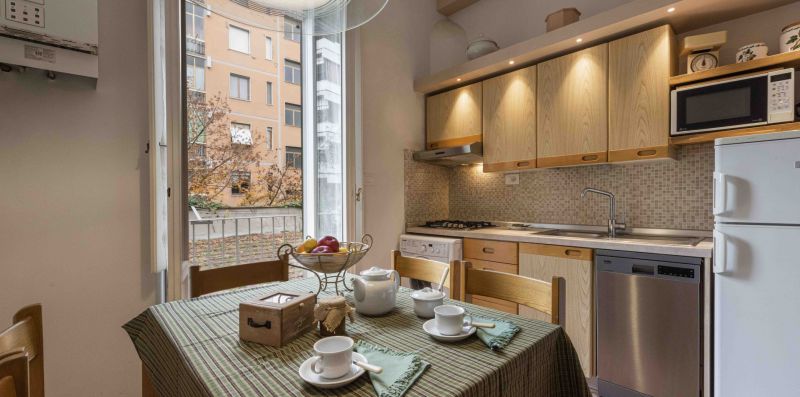 The living area is a welcoming space, ideal for relaxing after a day of exploring the city. The kitchen is equipped with high-quality appliances, including a dishwasher, microwave, and everything you need to prepare delicious meals. The large bathrooms, both equipped with shower, guarantee maximum comfort for all guests.
