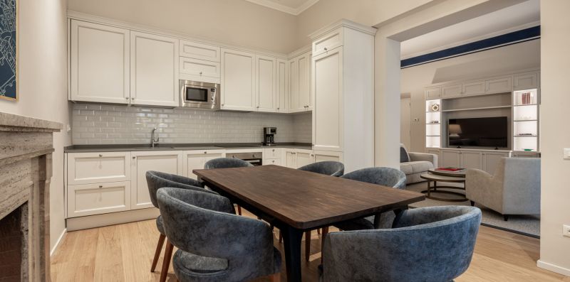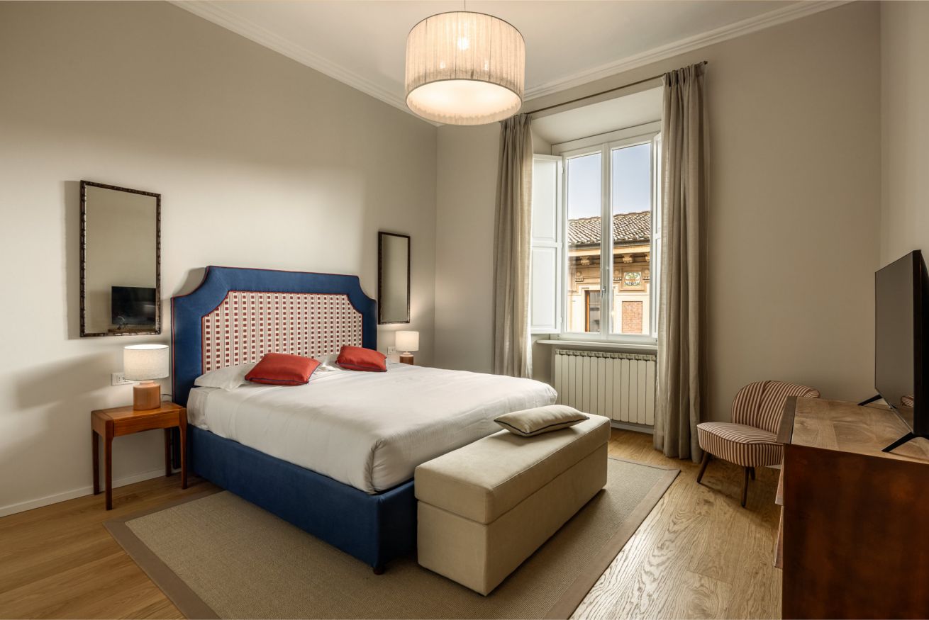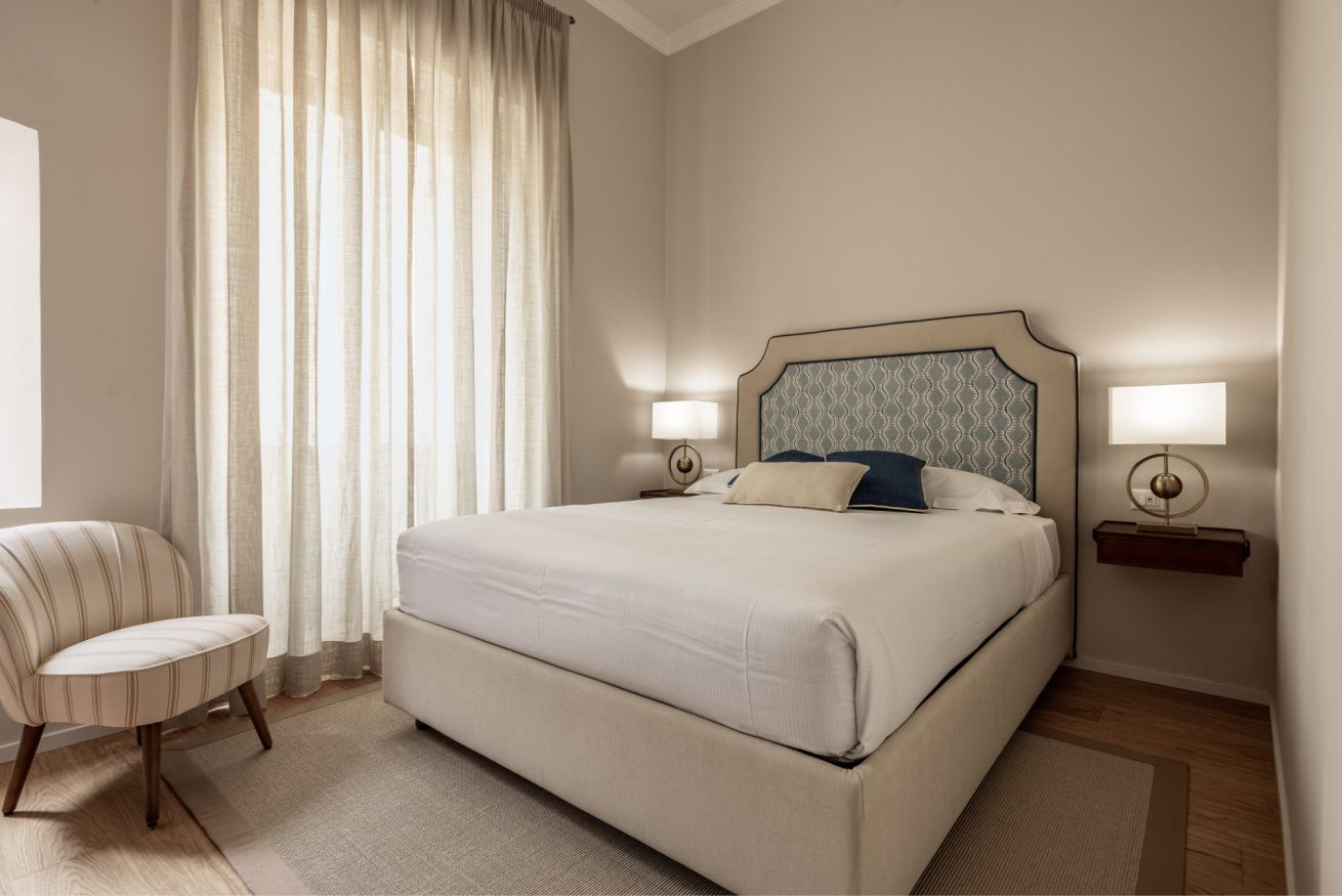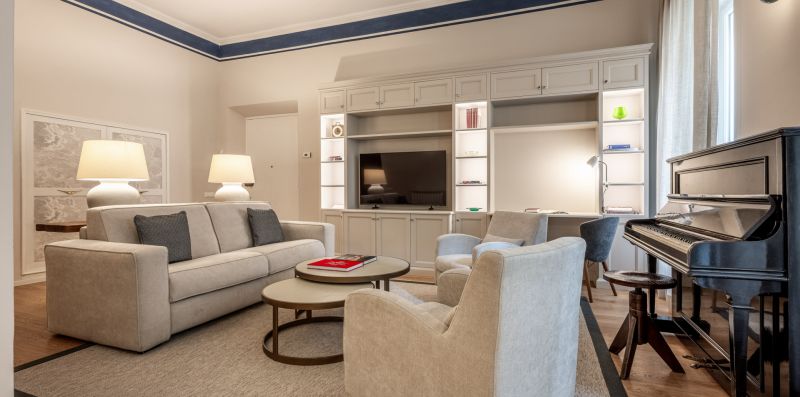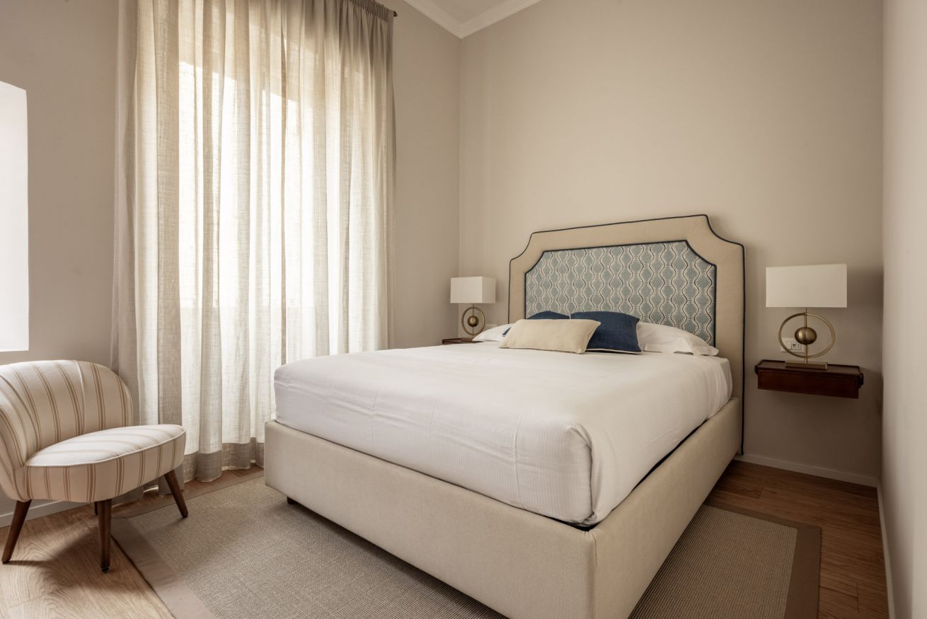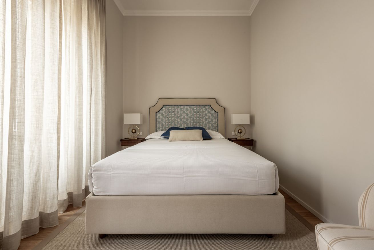 Recently completely renovated, the property stands out for its contemporary style, enhanced by fine furnishings and designer elements that harmoniously complement the building's historic context. The rooms are spacious and bright, with splendid parquet floors that contribute to a warm and refined atmosphere. Great attention has been paid to the quality of the spaces and guest comfort, with functional solutions and high-quality finishes.