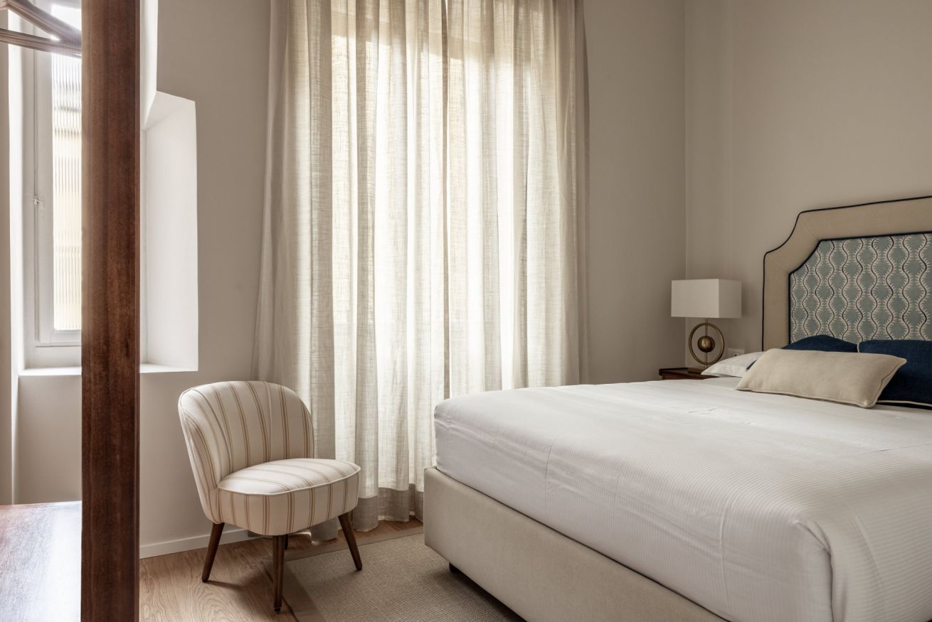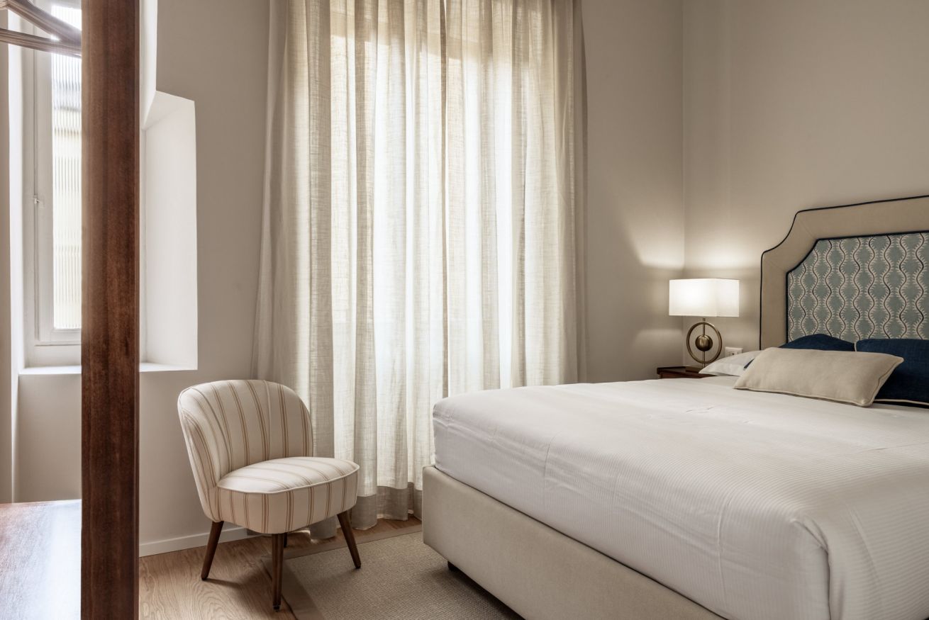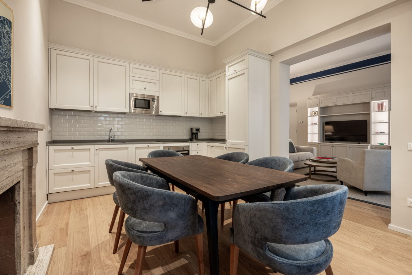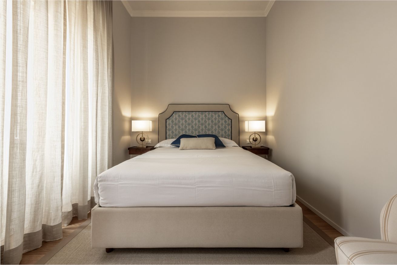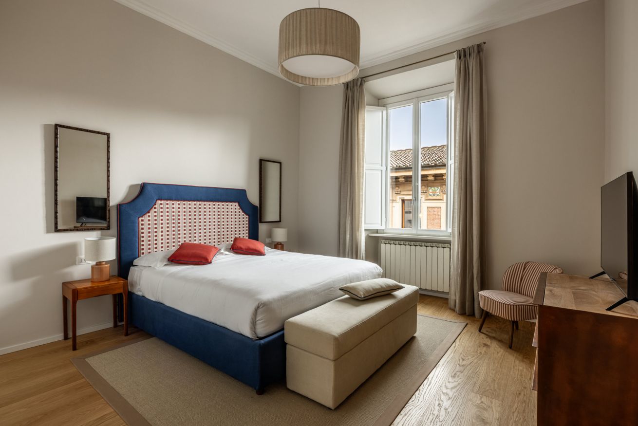 Recently completely renovated, the property stands out for its contemporary style, enhanced by fine furnishings and designer elements that harmoniously complement the building's historic context. The rooms are spacious and bright, with splendid parquet floors that contribute to a warm and refined atmosphere. Great attention has been paid to the quality of the spaces and guest comfort, with functional solutions and high-quality finishes.