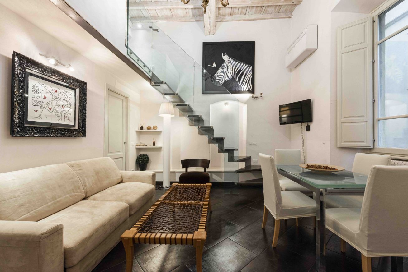 In the heart of Florence, on Via Calimaruzza, just steps from Palazzo Vecchio and all the city's main attractions, lies this elegant two-level apartment, perfect for fully experiencing the unique atmosphere of the historic center.