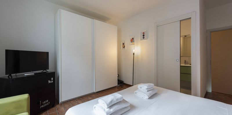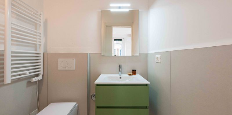 Located on the ground floor of a well-kept and quiet building, the apartment welcomes guests into a warm and harmonious environment, where rustic elements blend with modern details to create a welcoming and refined atmosphere.