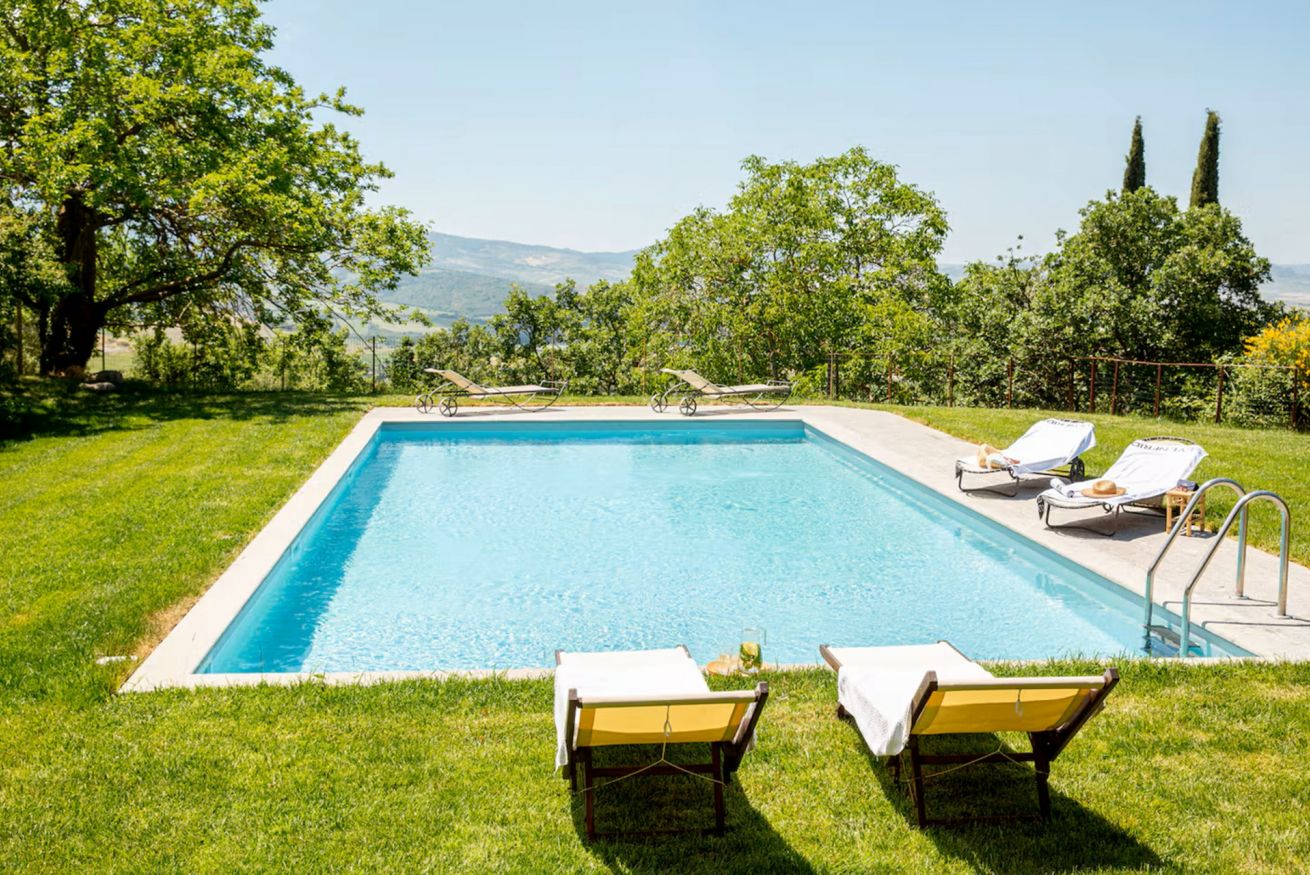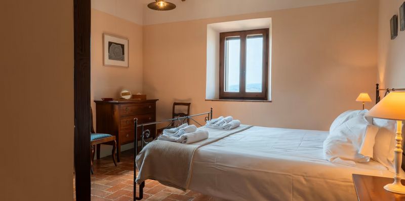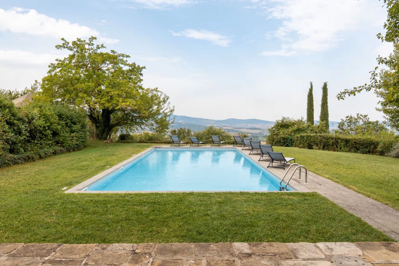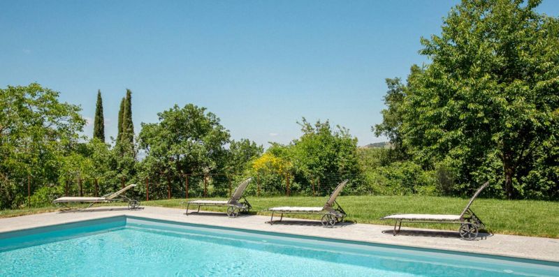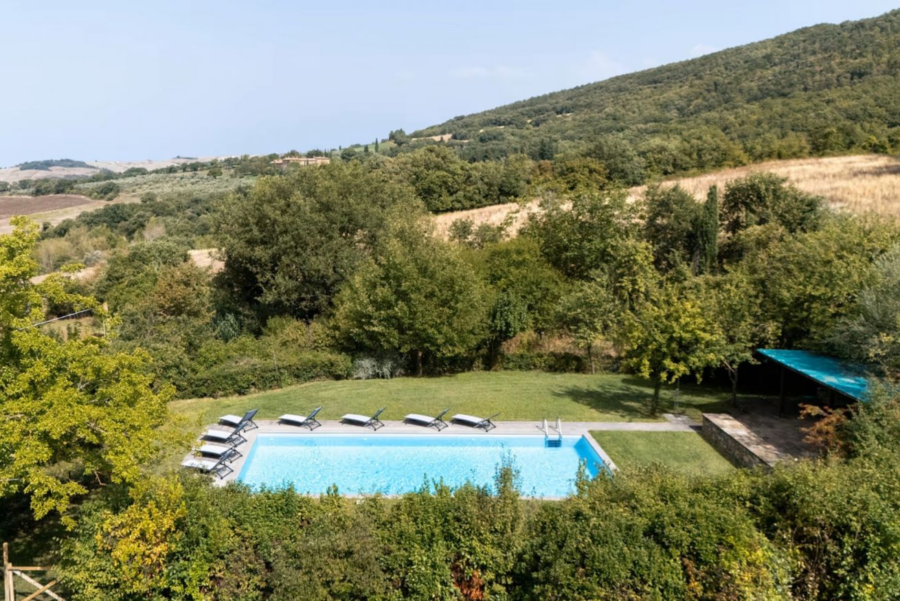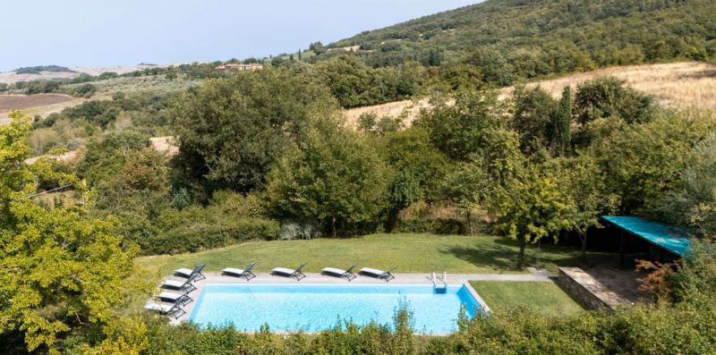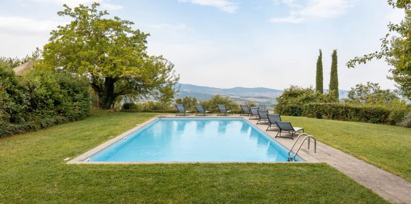 Panoramic country house with private garden and pool in the heart of the Val d'Orcia area. It can sleep up to 9 people, has 4 bedrooms and 4 bathrooms.