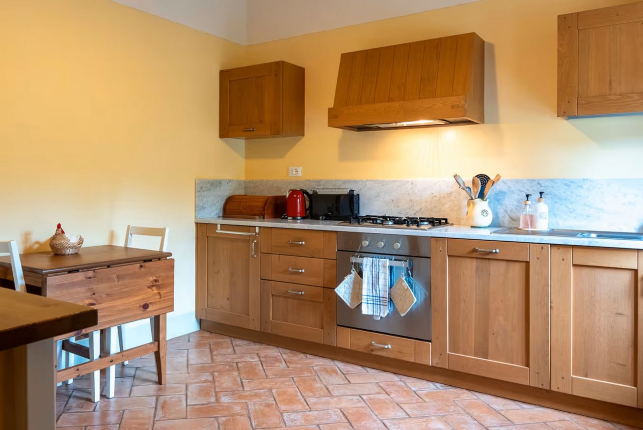 The farmhouse, renovated in 2007, has been carefully restored in full respect of local tradition, following eco-sustainability principles and using environmentally friendly materials and technologies, ensuring a comfortable and responsible stay. The final 2 km along an unpaved country road enhance the sense of complete immersion in nature and provide a pleasant escape from everyday hustle and bustle.