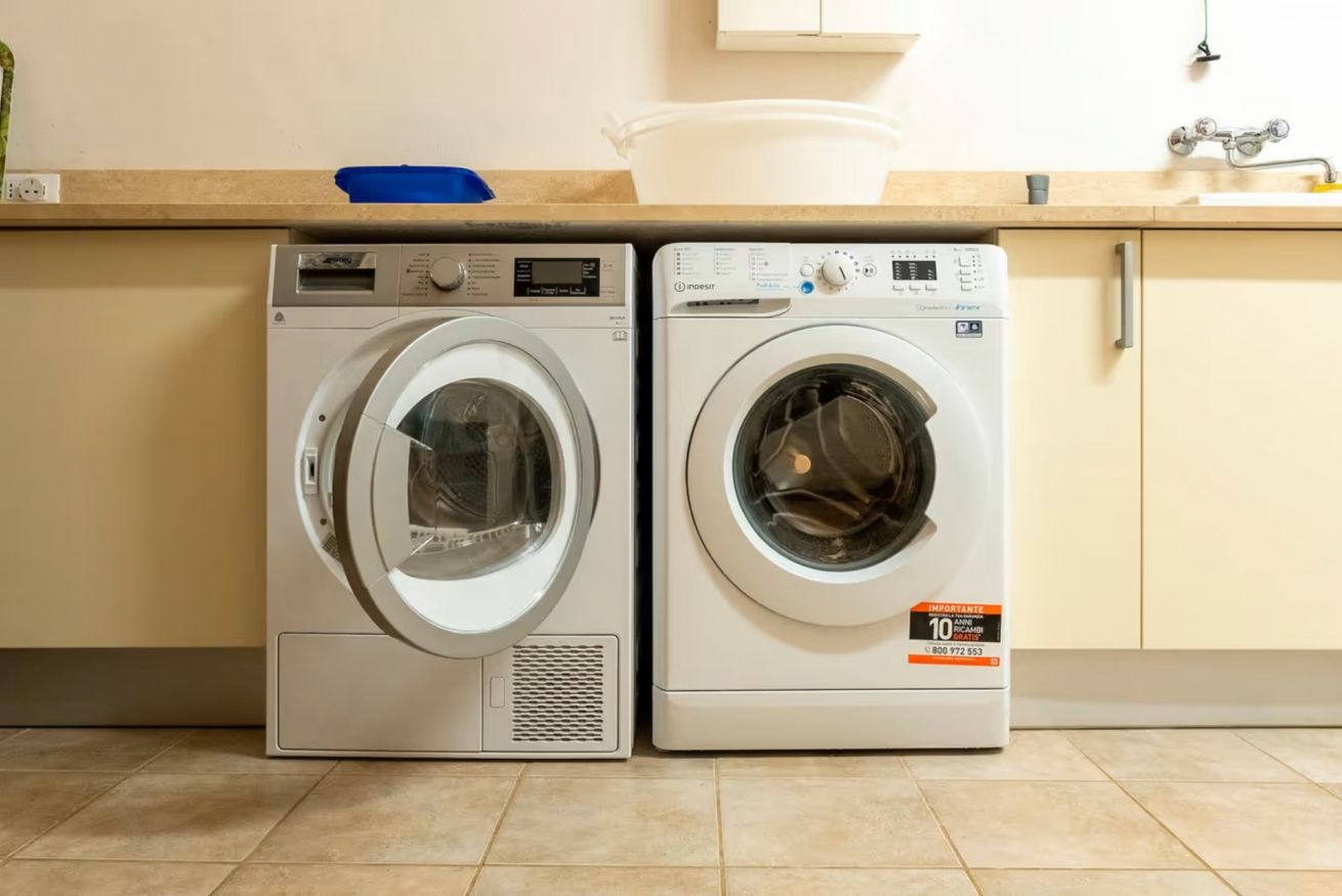 The level is completed by a guest bathroom and a convenient laundry room, fitted with a washing machine, dryer, iron and ironing board.