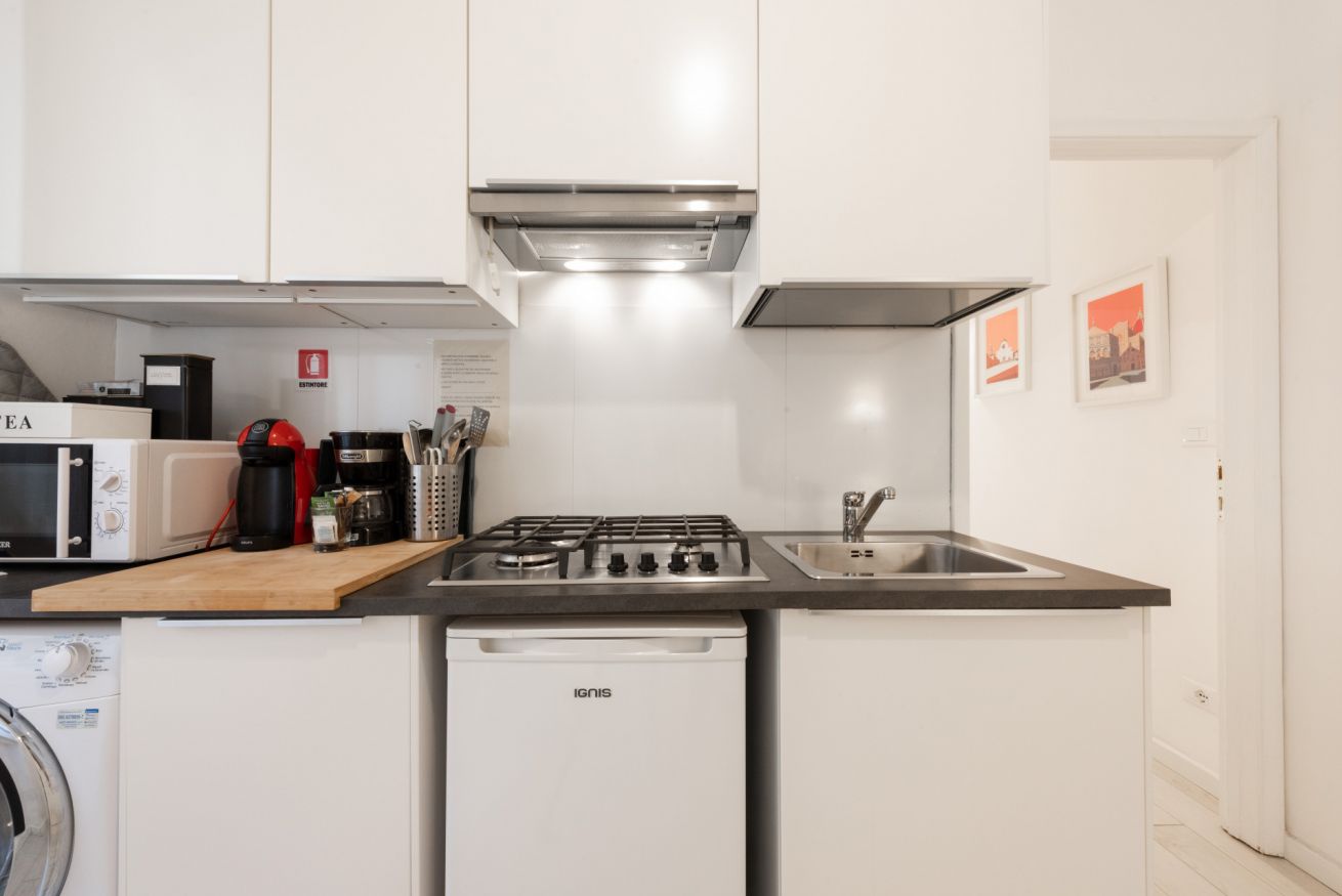 The apartment is located in an exceptional location in the heart of the historic center of Florence. It is located very close to Ponte Vecchio, the Uffizi, Palazzo Pitti and the Boboli Gardens. But not only that, it only takes a few minutes on foot to reach Piazza della Signoria and Piazza del Duomo.