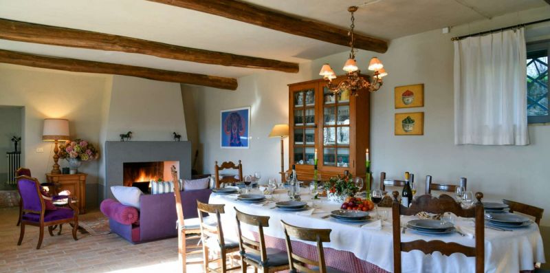 On the ground floor, the fully equipped kitchen opens onto a spacious dining area that comfortably seats 12 people, connected to an elegant living room with a sofa, two armchairs, and a fireplace that adds warmth and atmosphere. In the same area, there is a game room with an antique table and four chairs, ideal for leisure and social moments.