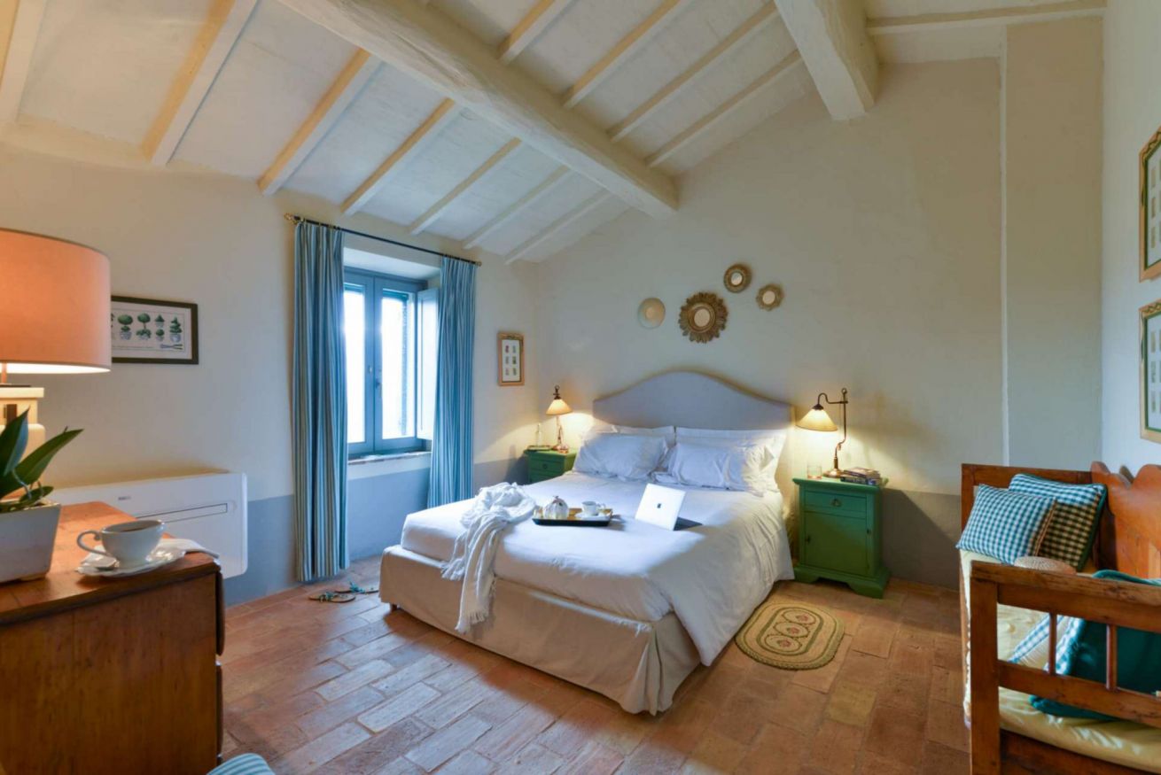 Villa Saragano stands in the enchanting setting of the Umbrian hills, just a few kilometers from Gualdo Cattaneo, within an authentic landscape of vineyards, olive groves, and rolling green horizons that stretch into the distance.