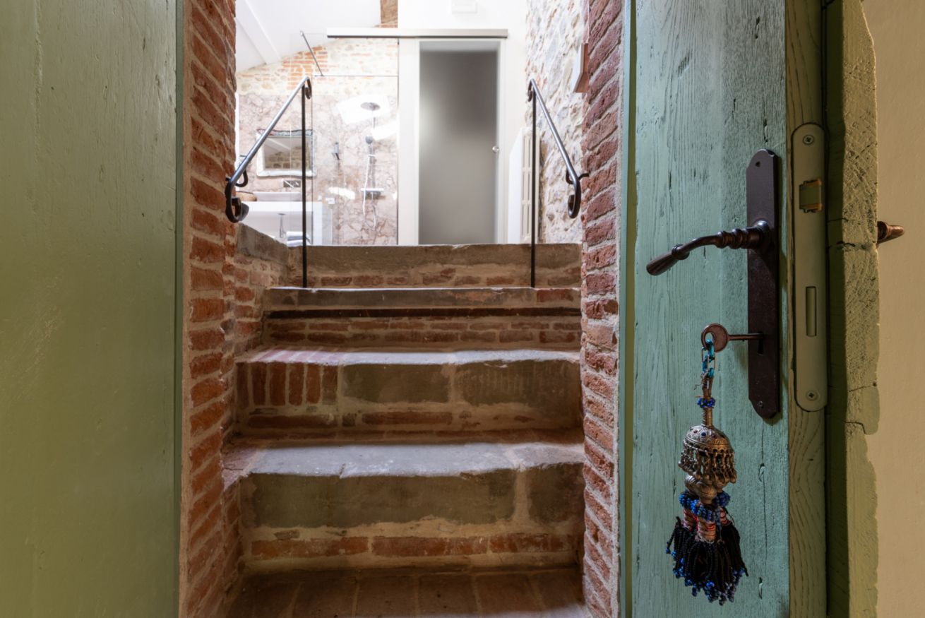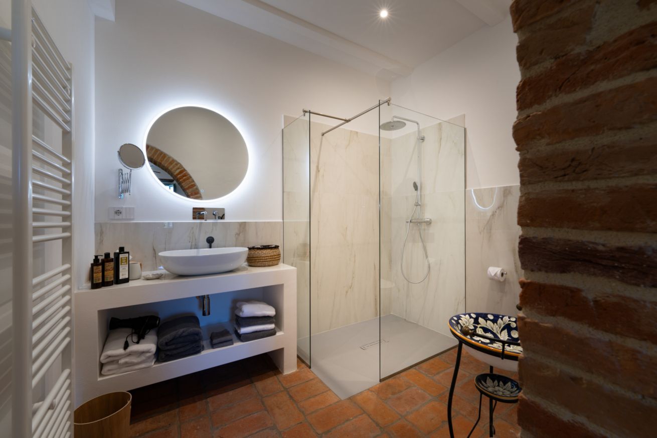 Second floor: An internal staircase leads to the sleeping area on the 2° floor, where three spacious and elegant double bedrooms are located. Each bedroom features a private en-suite bathroom with shower and is characterized by modern design, refined furnishings, and a peaceful atmosphere, ensuring privacy and relaxation.