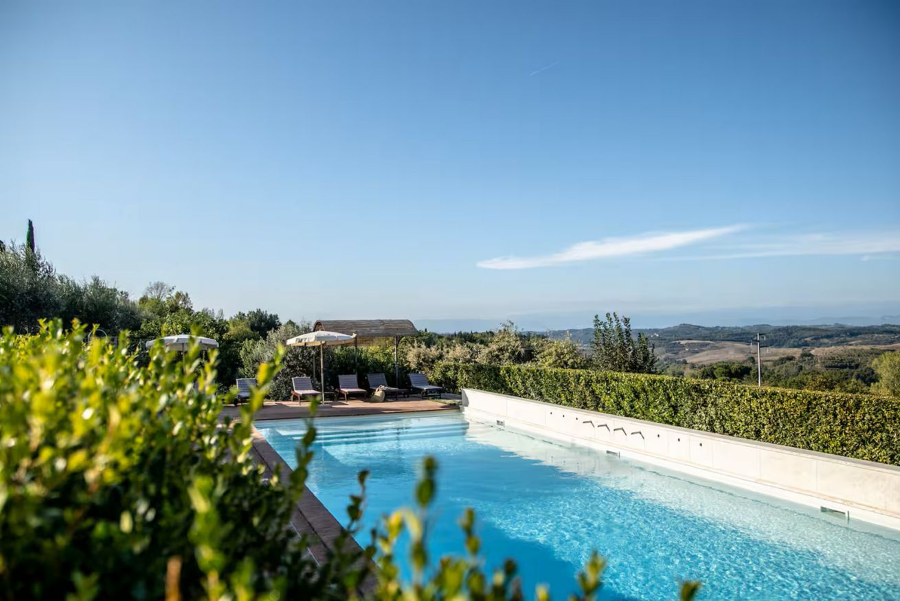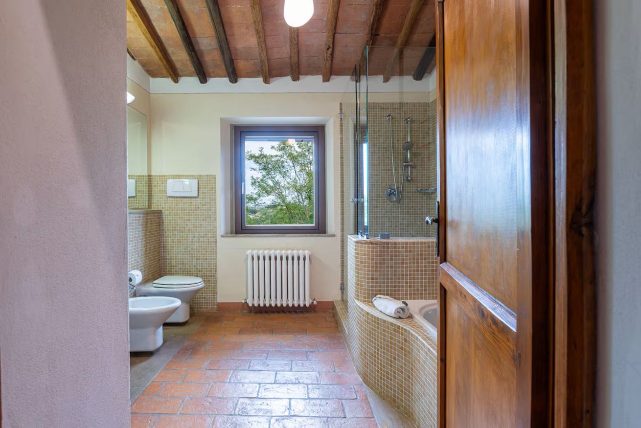 The heart of the outdoor area is the beautiful private pool (6 x 15 m, depth 20 - 180 cm), open from April to October and equipped with sun loungers, umbrellas, and an outdoor shower. From here, the gaze stretches across the Tuscan hills, creating an atmosphere of absolute relaxation and harmony with nature.