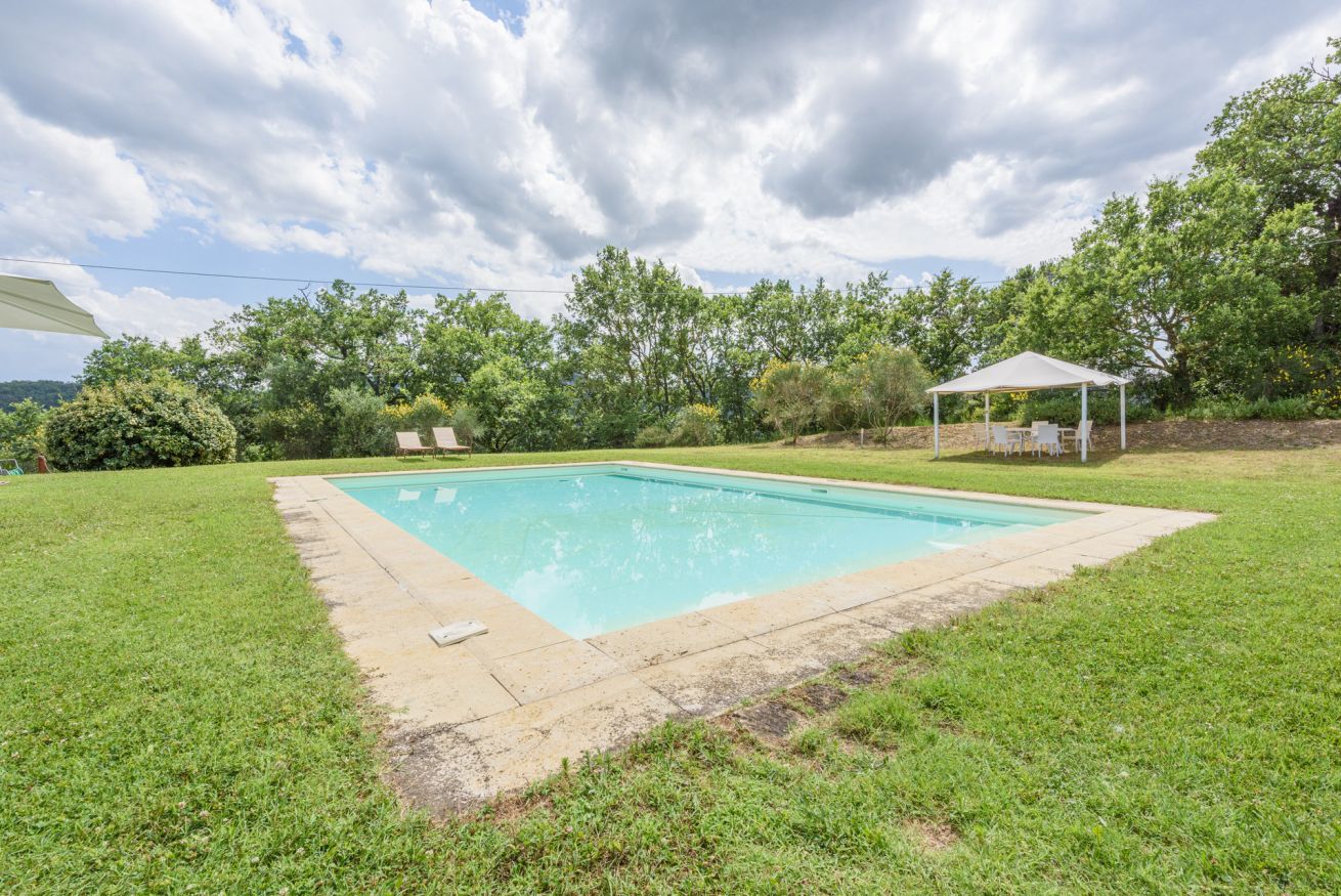The outdoor spaces are enhanced by a beautiful pool (12 x 7 m, depth 1.10 - 1.50 m), open from May 15th to the end of September, and equipped with parasol, sunbeds and external shower. Next to the pool you will find a gazebo with a dining table for 12 people.