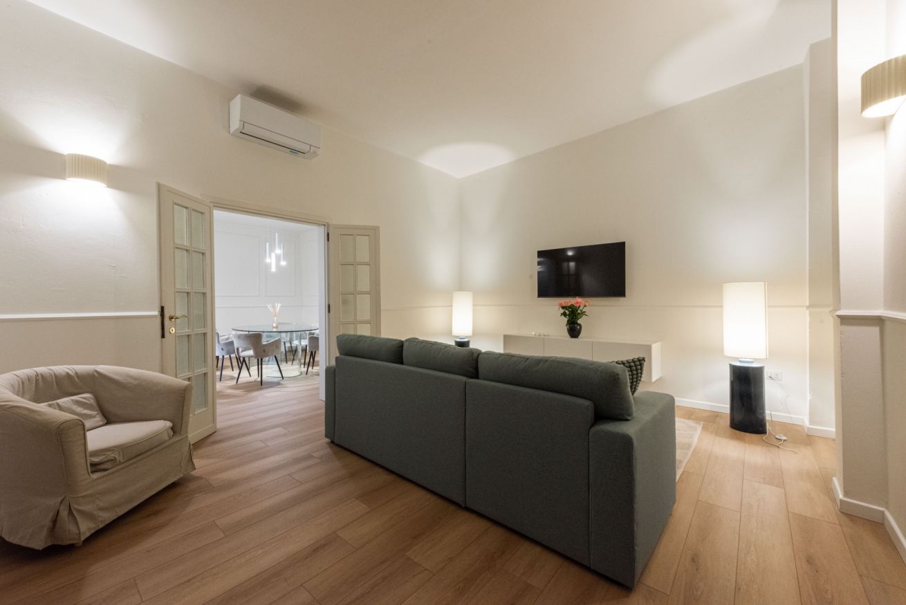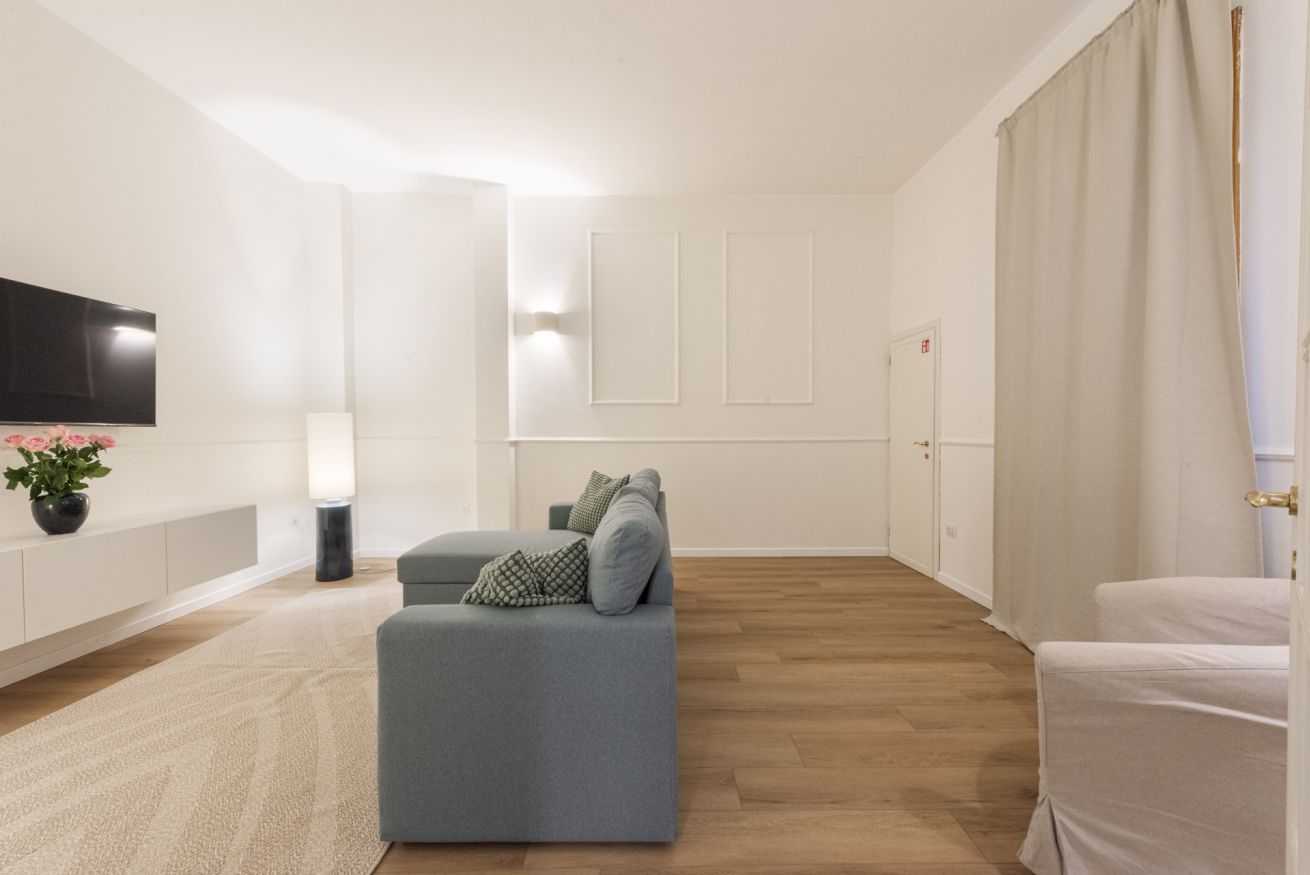 In the heart of Florence's historic center, in Borgo Ognissanti, we offer for rent an elegant and functional apartment located in one of the city's most popular areas, a short distance from the Basilica of Santa Maria Novella, the central station, and all the main artistic and cultural attractions. The location is ideal for those who want to experience Florence comfortably, easily navigating monuments, museums, restaurants, and shops on foot.