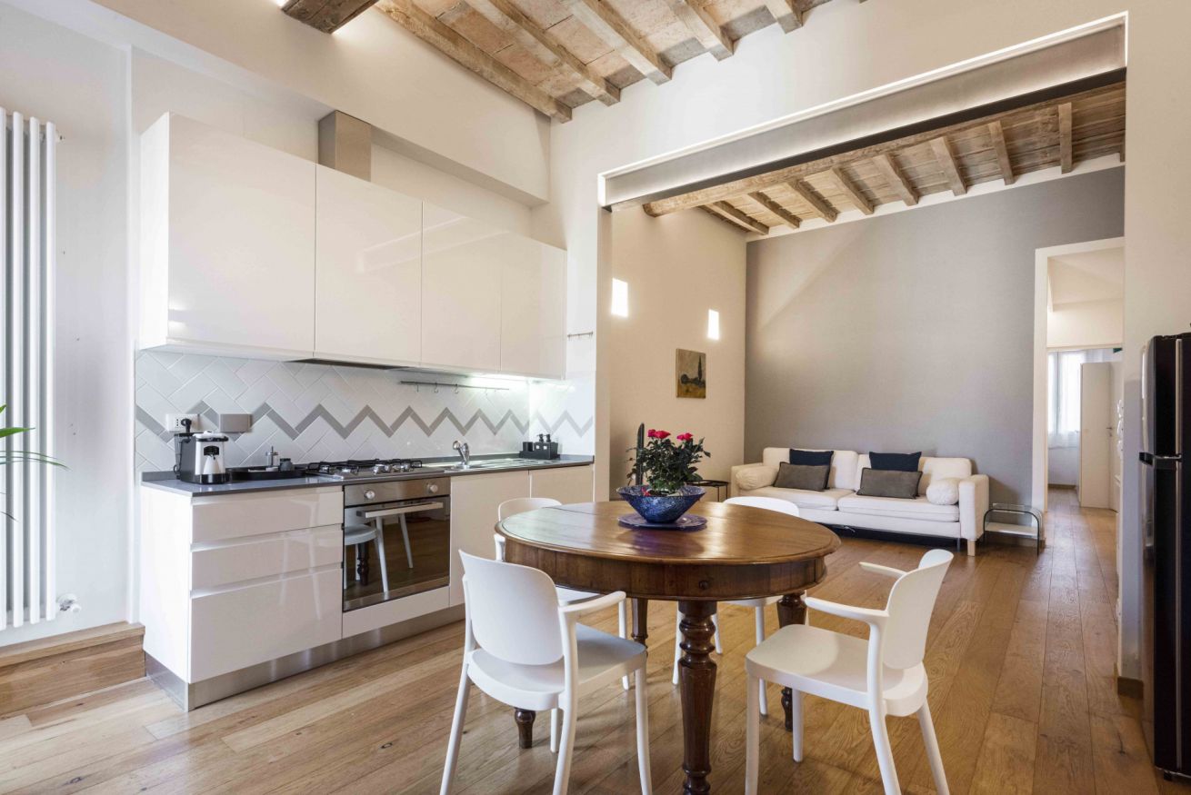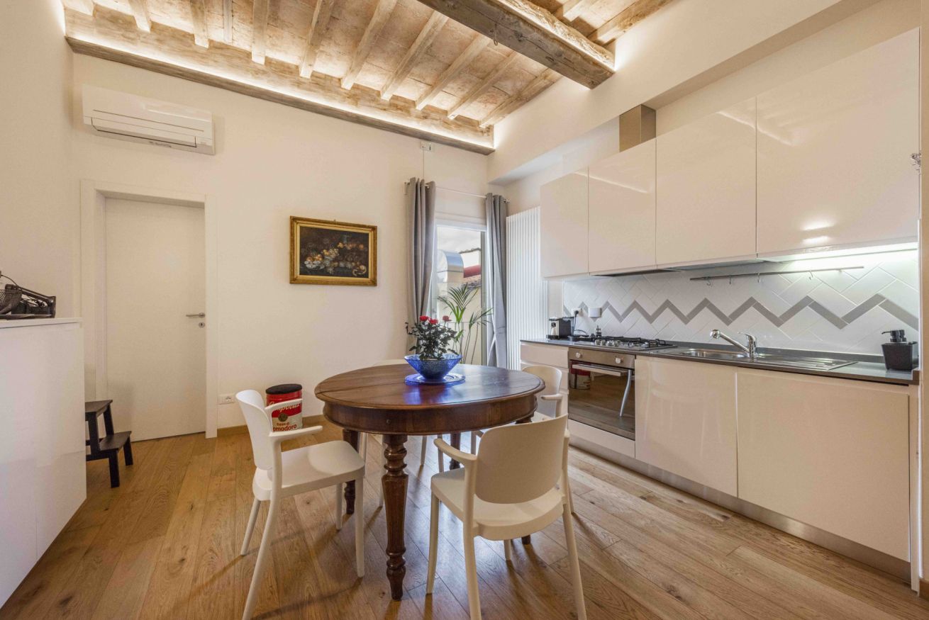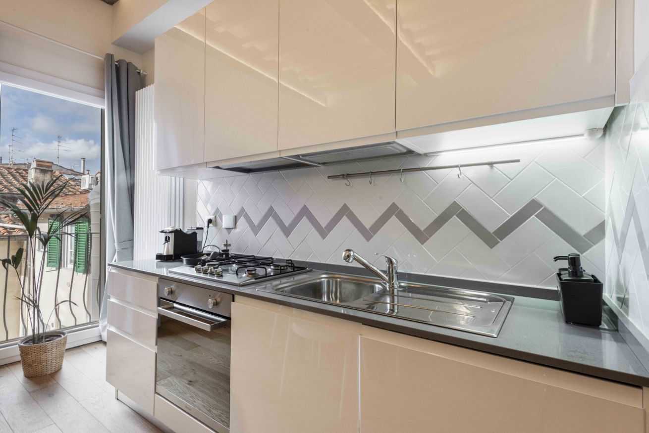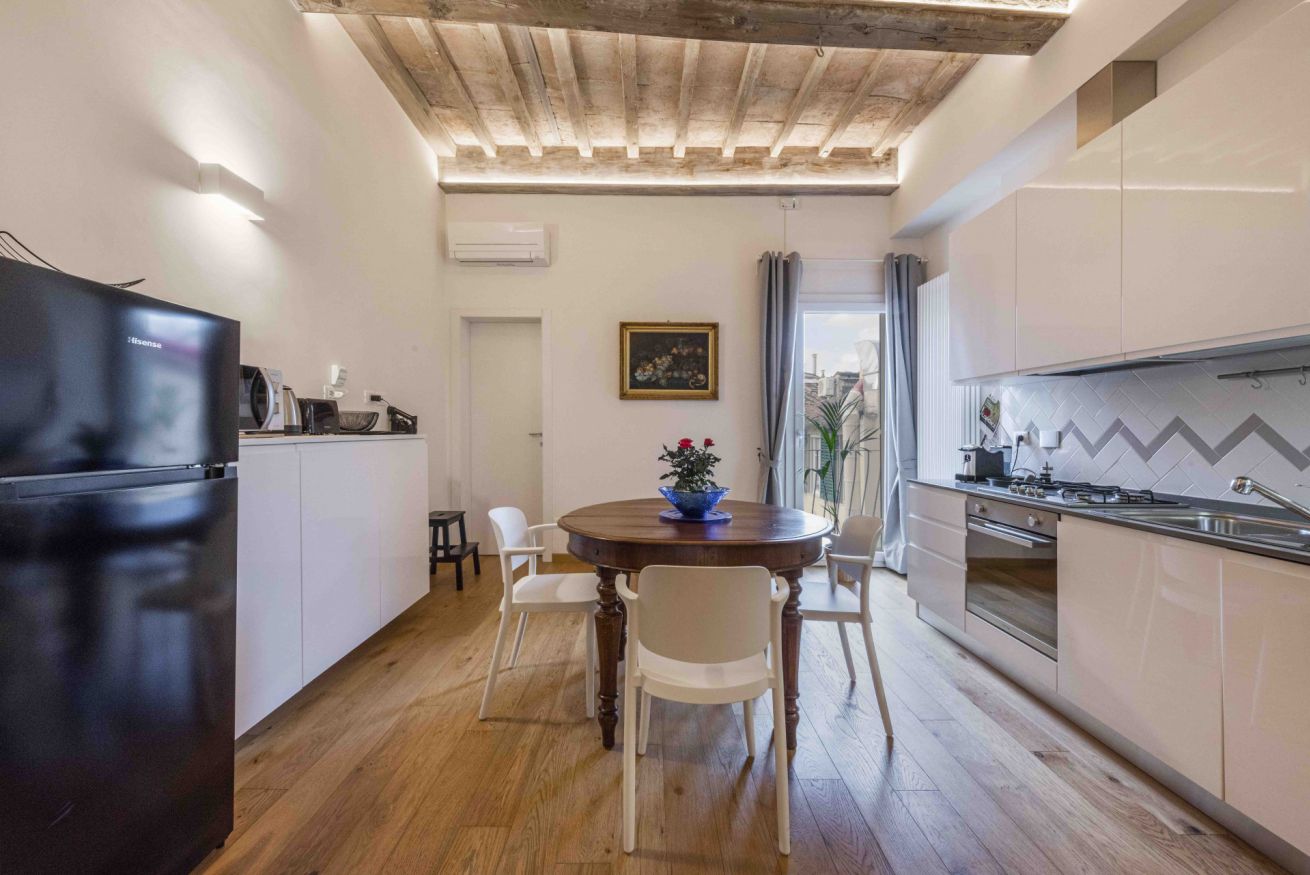 The apartment is located in Via del Porcellana in Florence, a few steps from the beautiful Santa Maria Novella square, where there are one of the most beautiful churches in the city and the Museo del Novecento. The neighborhood is very lively and full of restaurants and clubs of all kinds and for all tastes: in fact, there is no shortage of typical Tuscan restaurants or ethnic ones representing cuisines from all over the world.