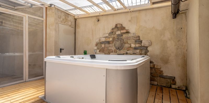 Among the outdoor spaces you will find a lovely pool (9.5 x 5 m), open from 1st May to 30th September, and equipped with: sun loungers, parasol, swing, and a jet of water for cervical massage.