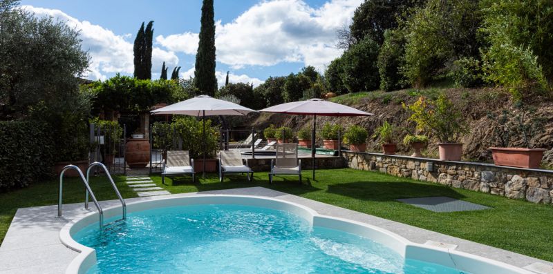 The outdoor areas are embellished by a private pool (6.5 x 3.5 m), open from May to October, with a solarium area (sunbeds). You will find also an outdoor Jacuzzi (for 4 people, with 1200 liters of water that can be heated up to 40°, that can only be used upon request with fee).