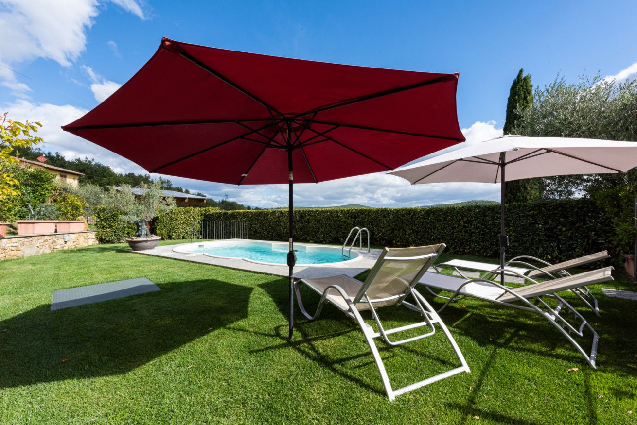 Wonderful Tuscan farmhouse with pool and outdoor Jacuzzi, located in the heart of the Valdambra, on the border with the Chianti area. It can sleep up to 6 people in total (including any newborns/children), has 4 bedrooms and 2 bathrooms.